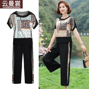 中年妈妈夏装套装休闲中老年女短袖T恤气质宽松显瘦遮...