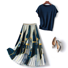 欧列深圳南油女装高端冰丝T恤半身裙套装2022夏季...
