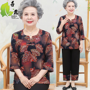 奶奶装夏装套装棉绸70岁老人衣服女太太中老年人春装...