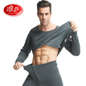 浪莎男士秋冬加绒加厚不倒绒圆领保暖内衣纯色女礼盒内...