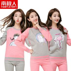 秋冬青少年女式秋衣秋裤女加绒加厚卡通学生可爱保暖内...