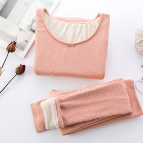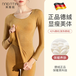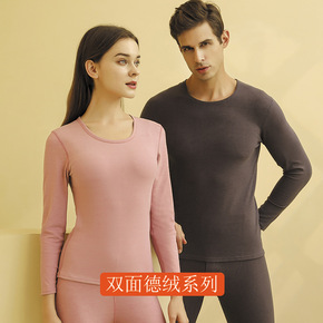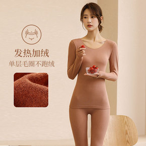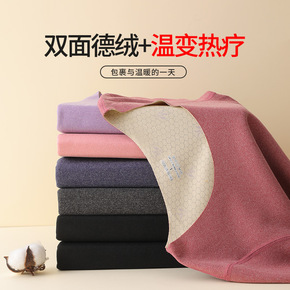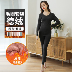 女士德绒秋衣秋裤双面磨毛发热打底衫圆领修身美体保暖...