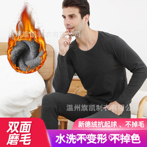 秋冬季大码男士无痕德绒保暖内衣套装 圆领打底加绒保...