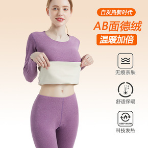 厂家批发秋衣秋裤套装女德绒无痕保暖内衣加绒加厚阳离...