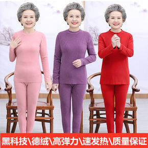 中老年秋衣秋裤纯棉女士保暖内衣套装中高领棉毛衫本命...
