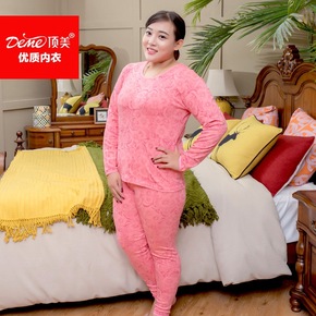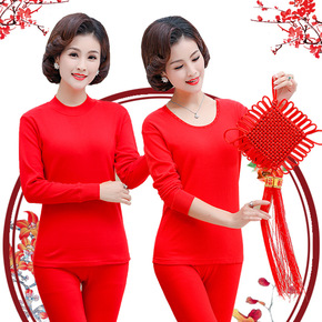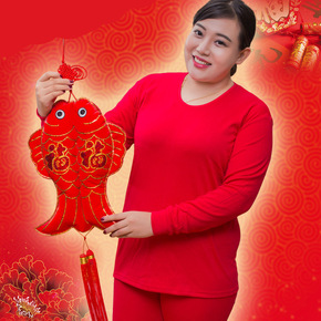 胖mm本命年大红色纯棉秋衣秋裤套装中老年女士加大码...