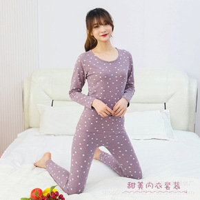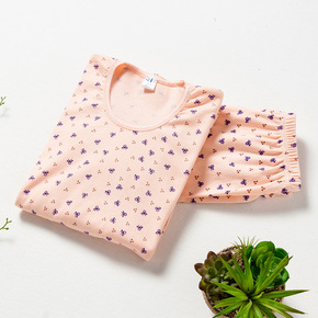 冬季全棉印花圆领棉毛衫保暖内衣套装中老年女士秋衣秋...