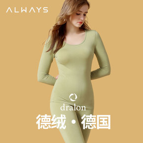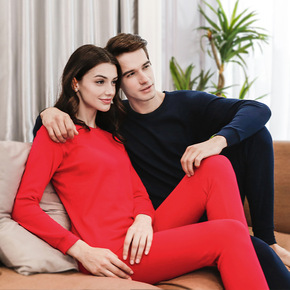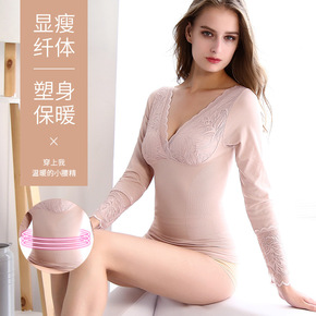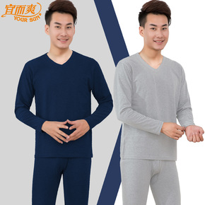 宜而爽保暖内衣男女精梳棉氨纶超薄V领秋衣秋裤套装贴...