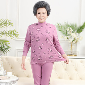 随心缘中老年女士印花妈妈款保暖内衣套装品质柔加厚一...