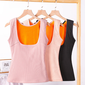 3855加厚加绒秋冬季托胸保暖背心女内穿纯棉内衣马...