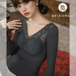 2021媚动力秋冬新款固定杯保暖背心蕾丝花边精品棉...