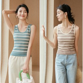她闺蜜 带胸垫条纹毛圈背心保暖背心打底百搭保暖内衣...