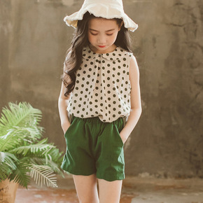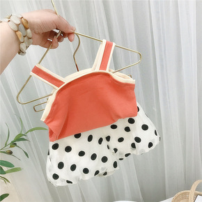 2021夏季韩国网红女童洋气吊带背心中小童圆点大P...