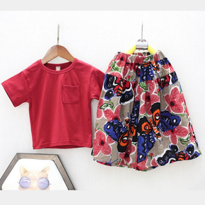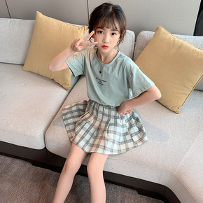 童装女童短袖套装2021夏季新款潮范格子短裙套装中...