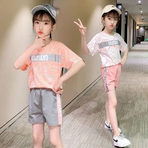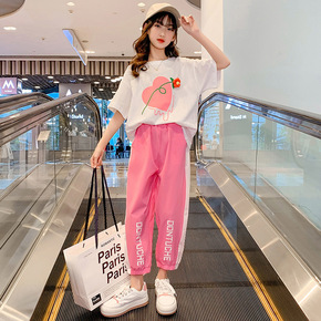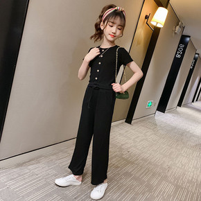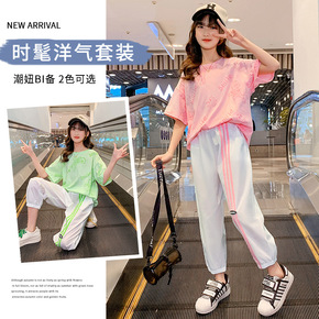 女童套装短款露脐T恤加宽松长裤22夏装新款外贸童装...