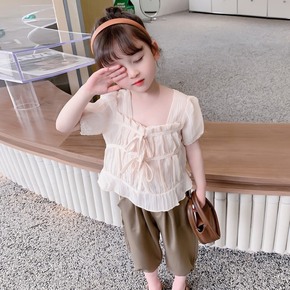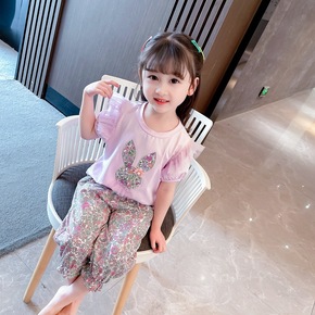 女童短袖夏装甜美休闲套装儿童韩版阔腿裤夏季两件套1...