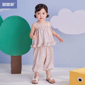 女宝宝吊带套装女童夏季度假风夏装女孩洋气田园风衣服...