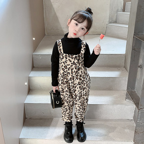 女童套装半高领长袖打底衫加豹纹连体裤22秋冬装新款...
