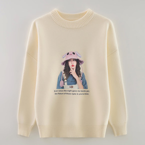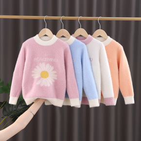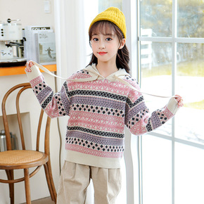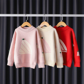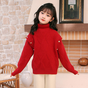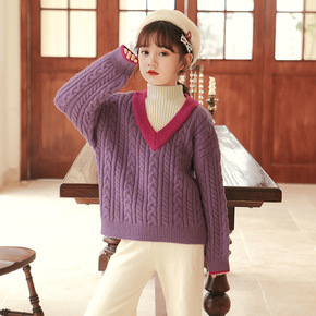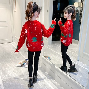 现货2021女童套头毛衣秋冬新款加厚中大儿童圆领圣...