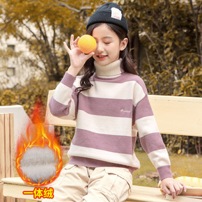 女童毛衣加绒加厚新款2022毛衣韩版秋冬条纹一体绒...