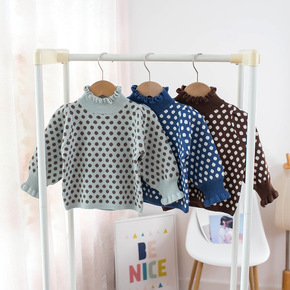 一件代发 2021秋冬款儿童毛衣 女童圆点拼色开衫...