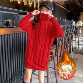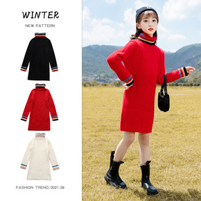女童高领毛衣女孩秋冬装儿童长款针织打底衫中大童加厚...