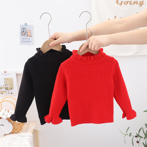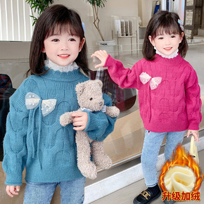 女童毛衣秋冬2021年新款儿童针织打底衫女孩圆领纯...
