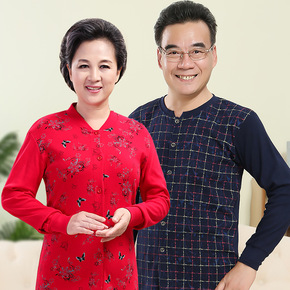 2018款中老年开衫秋衣秋裤男女纯棉薄款棉毛衫老年...