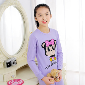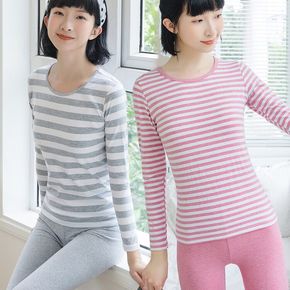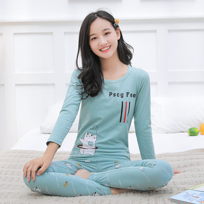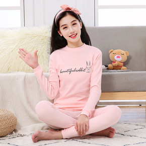 青少年秋衣秋裤女纯棉套装少女保暖内衣打底衫初高中学...