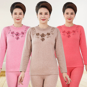 中老年秋衣秋裤纯棉套装妈妈保暖内衣老人奶奶棉毛衫线...