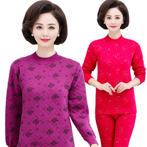 秋衣秋裤女士纯棉套装三层加厚半高领大码妈妈保暖内衣...
