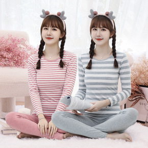 秋衣秋裤女士纯棉套装学生少女打底紧身美体全棉保暖内...