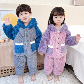 儿童睡衣男童法兰绒珊瑚绒秋冬季保暖加厚款女孩中小童...