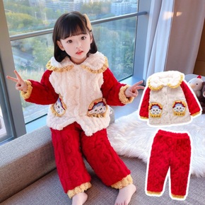 跨境外贸儿童珊瑚绒睡衣秋冬季加绒加厚法兰绒女童家居...