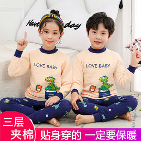2021秋冬儿童内衣套装三层加厚纯棉睡衣家男孩女孩...