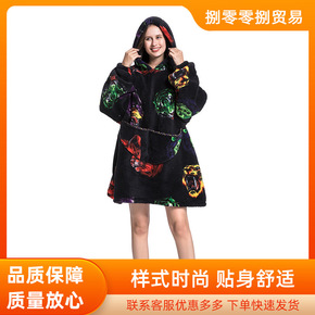 新款tv连帽卫衣毛毯保暖懒人电视毯子儿童套头防寒怪...