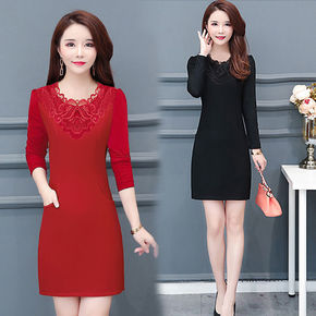 秋季新款性感黑色蕾丝连衣裙女修身中长款网纱拼接包臀...