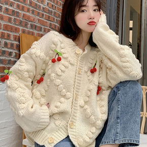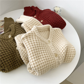 2021 慵懒风V领麻花毛衣开衫女长袖冬季百搭宽松...