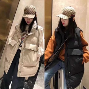 羽绒棉中长款马甲女外穿秋冬新款马夹百搭宽松坎肩背心...