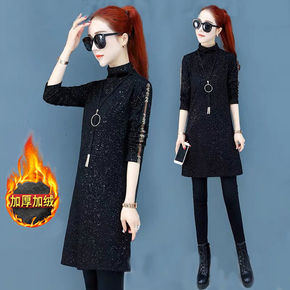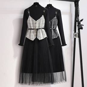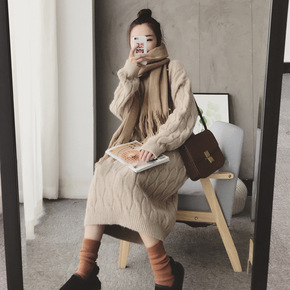孕妇秋冬装连衣裙时尚款女潮妈孕晚期网红过膝长款针织...