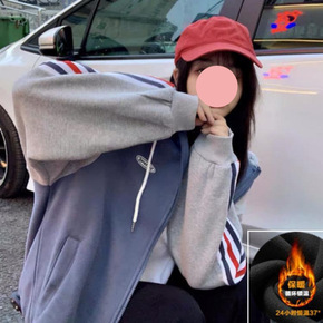 2021冬季韩版新款大码宽松慵懒风加绒加厚开衫仿羊...