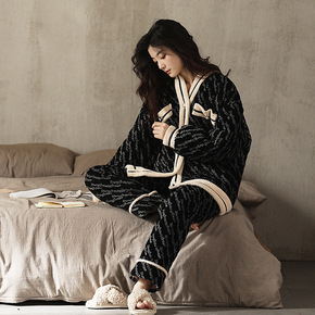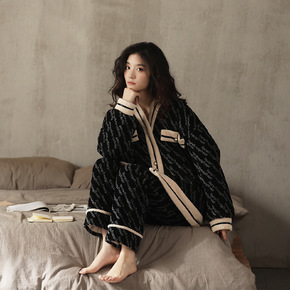 睡衣女冬季厚珊瑚绒三层夹棉法兰绒女士保暖绒家居服套...