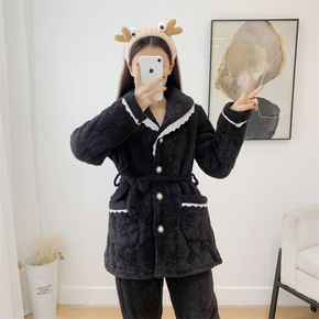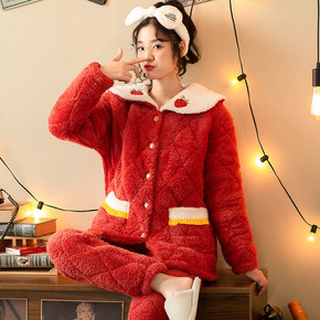 珊瑚绒睡衣女冬季2021年新款三层加厚夹棉加绒家居...