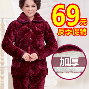 冬季女士中老年款珊瑚绒夹棉加厚睡衣套装加肥加大码 ...