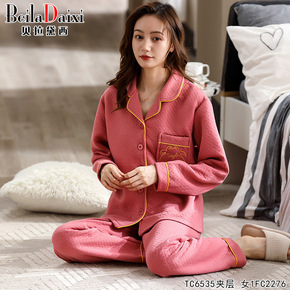 秋冬季女士睡衣三层保暖夹层中老年长袖纯棉家居服妈妈...