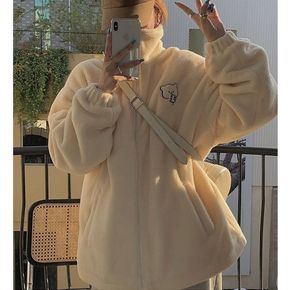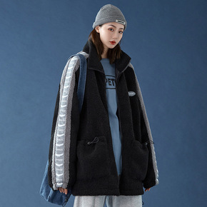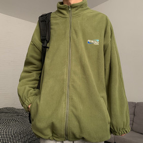 春秋季2021新款韩版ins复古刺绣摇粒绒上衣宽松...