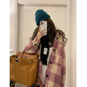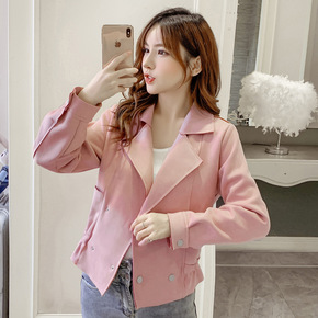 2021秋冬季新款格纹羊毛双面呢西装领气质短款休闲...