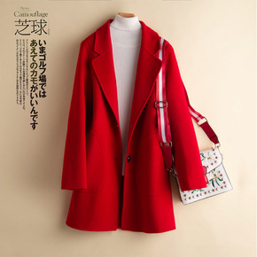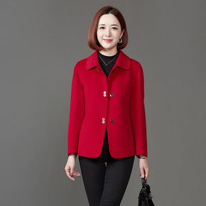2021新款秋装中老年双面呢羊绒大衣女短款修身翻领...