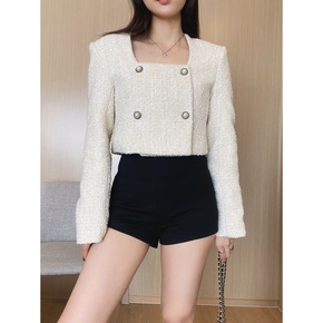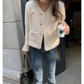 网红同款米白色小香风外套女春秋季新款短款羊毛显瘦百...