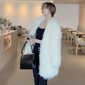 2021冬季新款宽松毛绒绒中长款外套名媛气质女装仿...